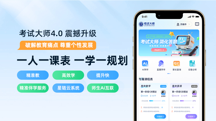 考试大师4.0 重磅发布!首创“一人一课表、一学一规划”精准教学模式