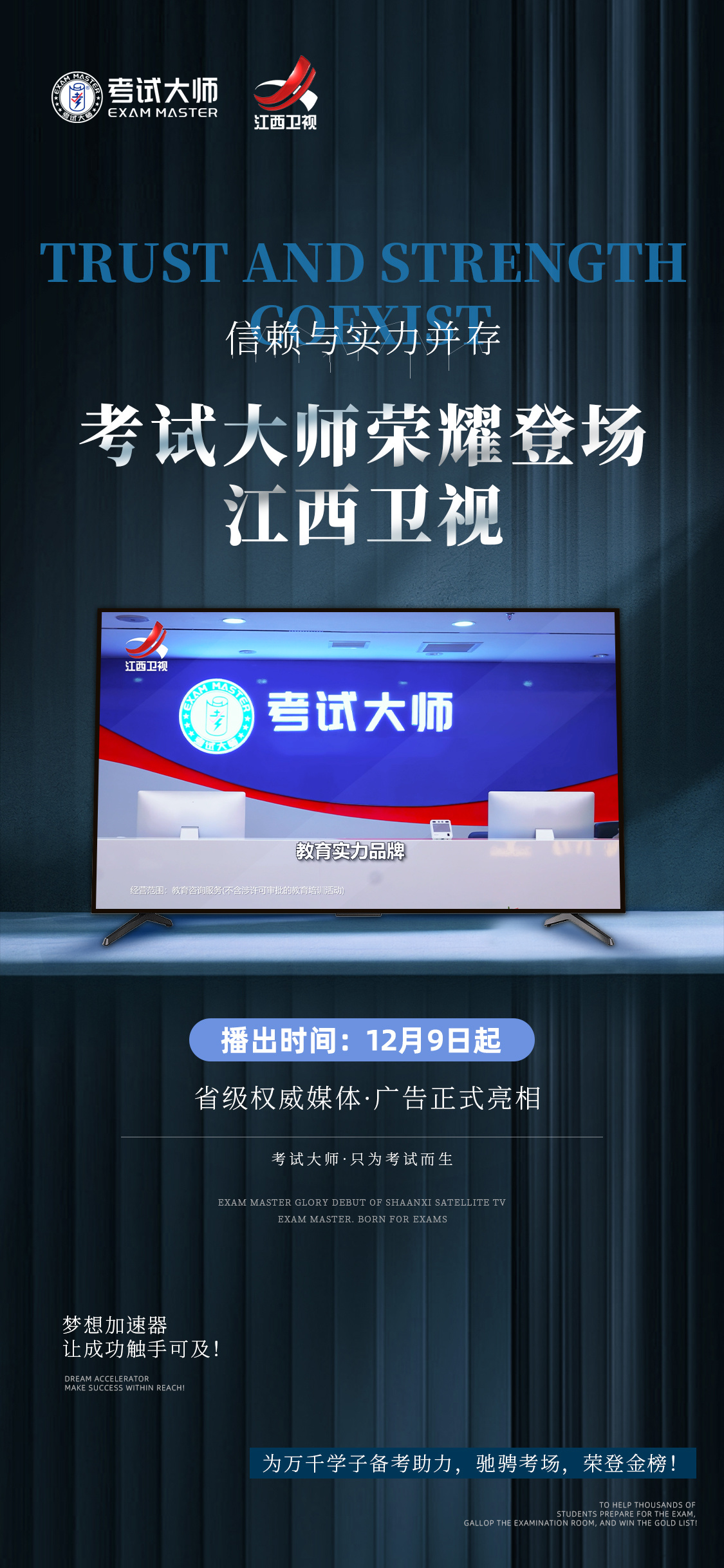 考试大师能够即将亮相江西卫视,彰显了其在教育行业内的不凡实力与良好口碑,这无疑是对考试大师品牌的又一次有力肯定。