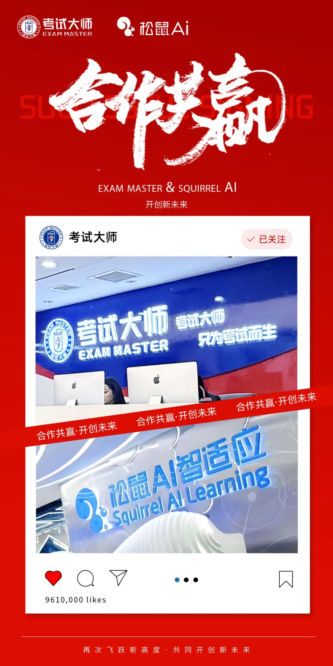 此次合作不仅是对双方品牌实力与影响力的肯定,更是对教育未来发展趋势的深刻洞察与把握。随着人工智能与教育融合的日益加深,考试大师与松鼠AI的强强联合,无疑将为广大学生带来更加优质、高效的学习体验,助力他们在学业上取得更大成就,共同引领教育智能化新纪元。