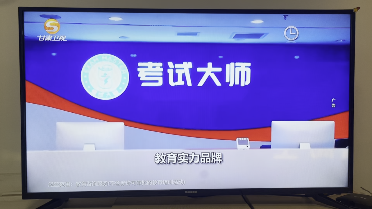 考试大师正式亮相甘肃卫视,意义深远。这是其品牌发展的重要里程碑,借助甘肃卫视的权威平台优势,考试大师得以将优质教育资源和创新教育理念传播至更广泛的受众群体,进一步提升品牌知名度与美誉度,赢得更多学子和家长的信赖,巩固其在教育行业的领先地位。