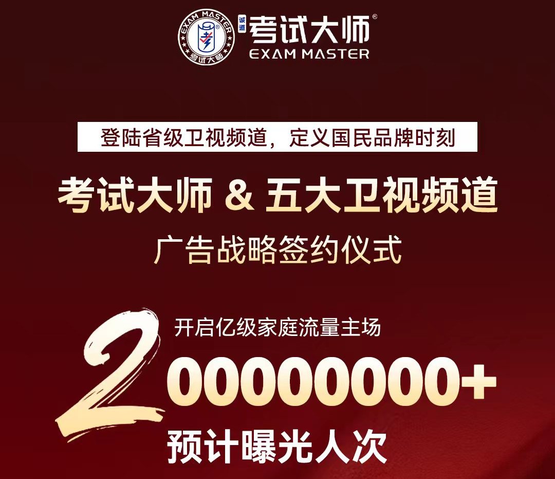 考试大师广告将于12月31日跨年演唱会黄金时段,在上述五大卫视频道同步播出。此次合作预计触达观众规模将突破200,000,000+人次,覆盖全国最具影响力的区域收视群体,在年度最具仪式感的家庭团聚场景中,完成品牌与千万家庭的首次深度对话。