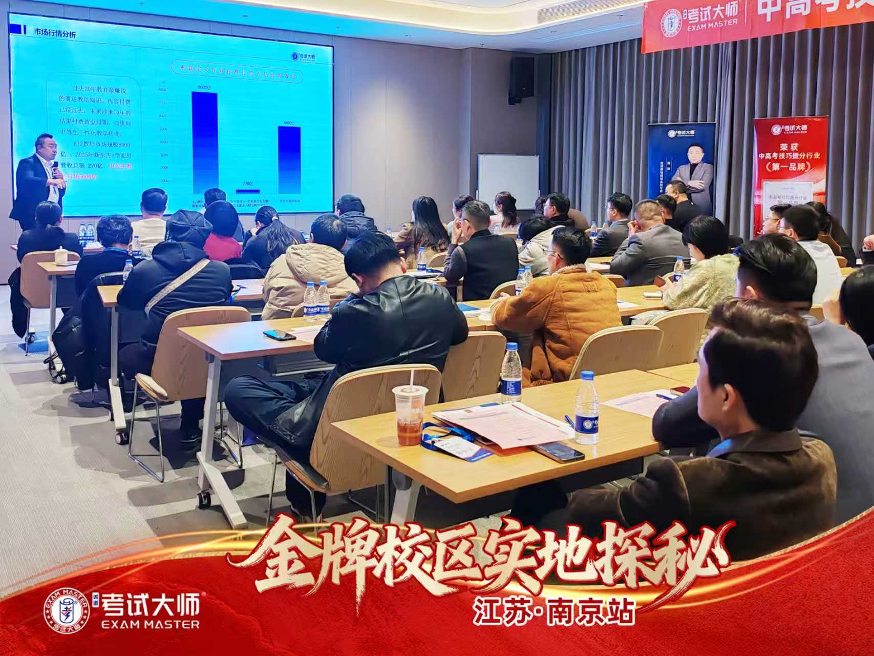 2026年1月15日至16日,考试大师“金牌校区实地探秘”南京站活动在南京某酒店成功举办。本次活动以“拒绝纸上谈兵,带你眼见为实”为主题,吸引了长三角地区众多教培机构负责人参与,通过实地探访与深度交流,为与会者呈现了一套可复制的校区运营体系。