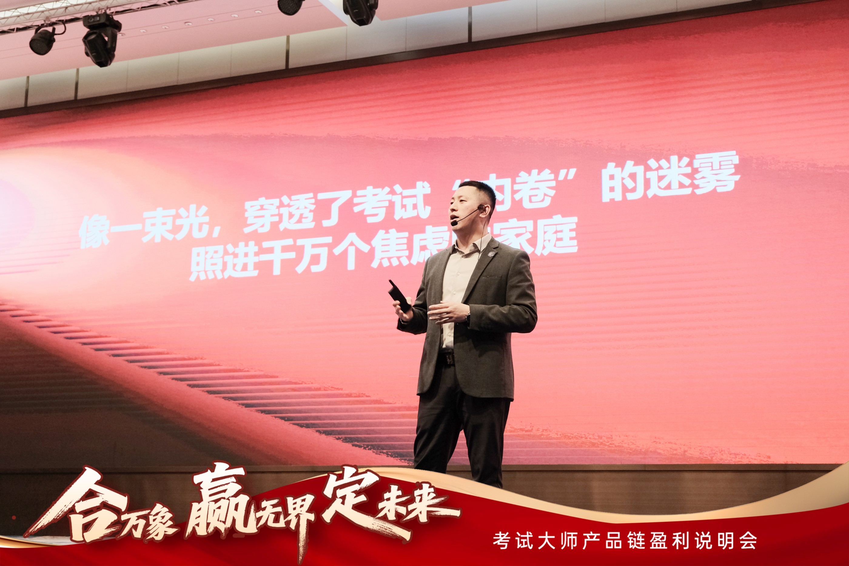 本次盛会,考试大师正式完成从单一爆款产品到全周期教育全生态产品链的战略升级,重磅发布了覆盖小学 - 初高中 - 大学 - 就业全成长周期的四大产品矩阵,完整拆解了 “引流 - 转化 - 盈利 - 价值延续” 的全链路商业盈利闭环,为全国教培从业者、合作伙伴指明了行业下半场的破局方向,也正式开启了考试大师生态化发展的全新征程。