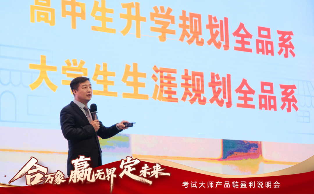 本次说明会的核心,是考试大师全生态产品链的完整亮相与全链路盈利体系的深度拆解。考试大师总裁刘庆洋先生在发布中明确表示,全新的产品体系彻底跳出了传统教培单产品运营的局限,围绕学生全学习周期,为四大产品赋予了清晰的商业定位,形成了环环相扣、双向赋能的完整商业闭环
