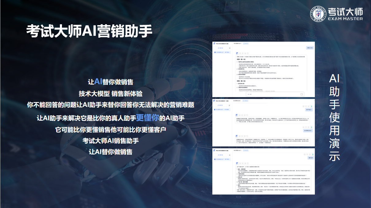 此外,活动还重点介绍了考试大师工具类产品的使用方法和运营落地方案。工具类产品作为考试大师的重要组成部分,能够帮助代理商们提高工作效率、优化用户体验。