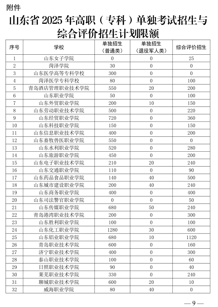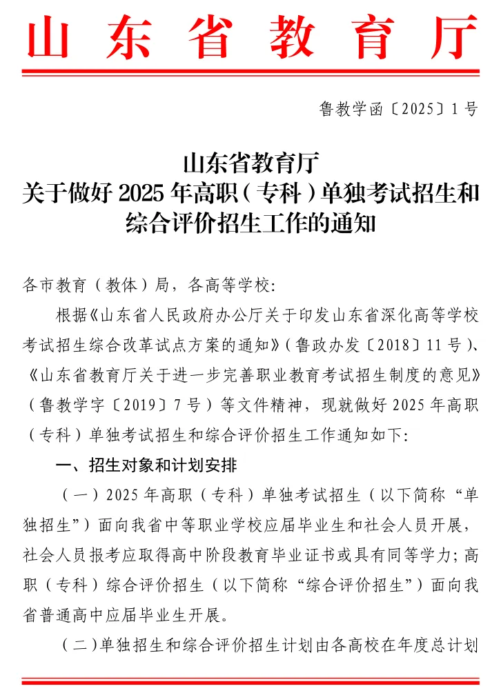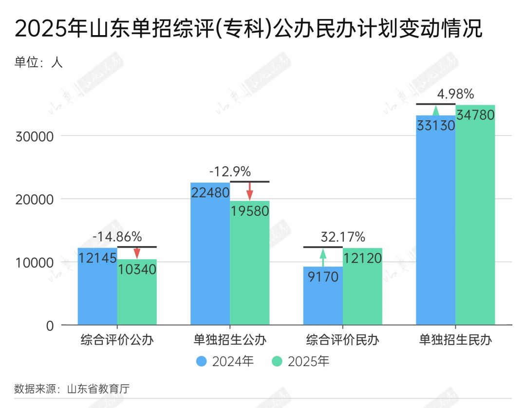2025年,山东省高职(专科)单独考试招生和综合评价招生的总招生计划限额为77830人,相较于2024年的78045人,减少了215人。其中,单独招生(普通类)计划减少了1250人,单独招生(退役军人类)计划减少了110人。招生名额的减少,意味着考生们将面临更加激烈的竞争。在有限的招生名额面前,考生们需要付出更多的努力,提升自己的竞争力,才能在众多竞争者中脱颖而出.