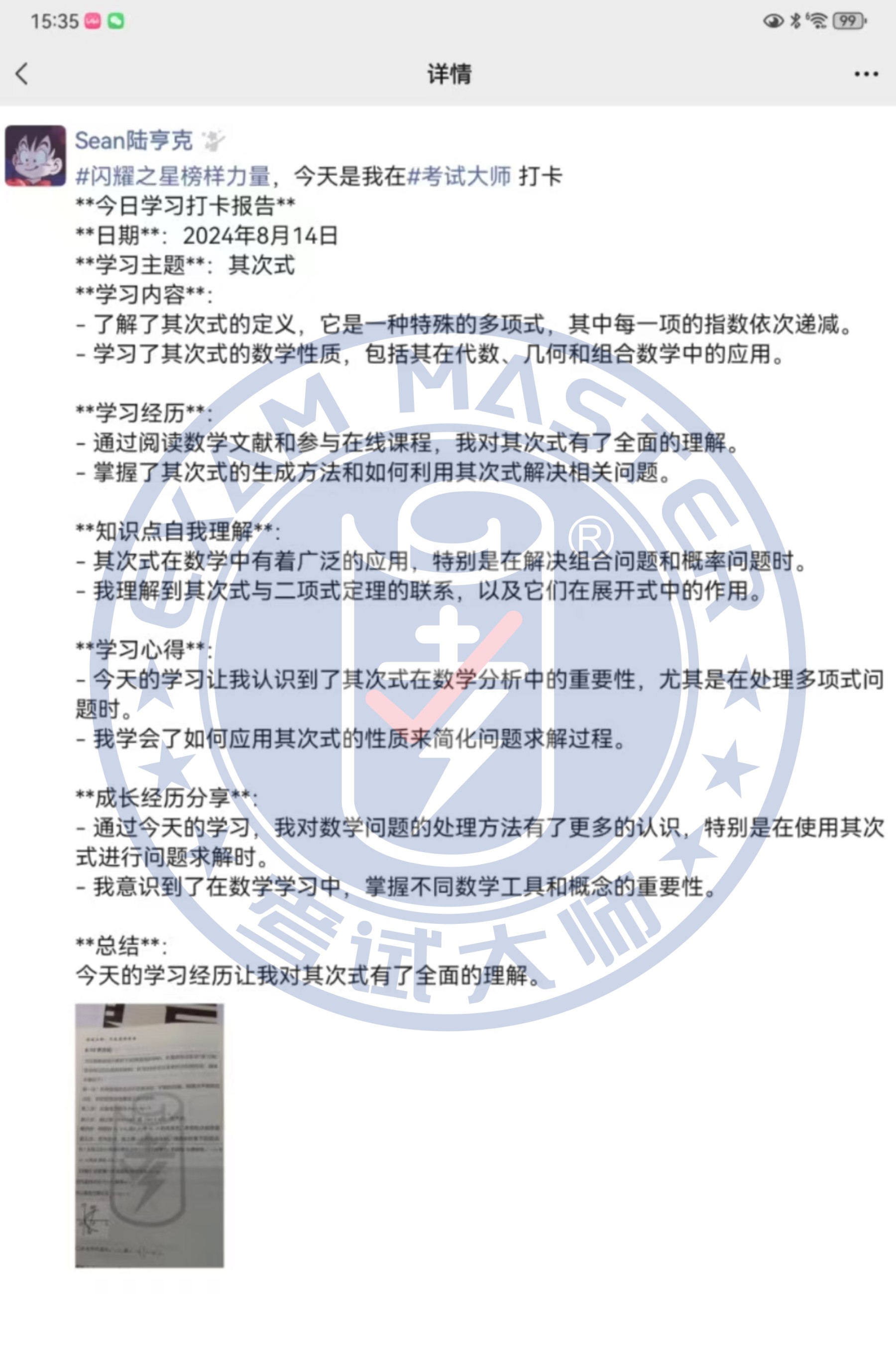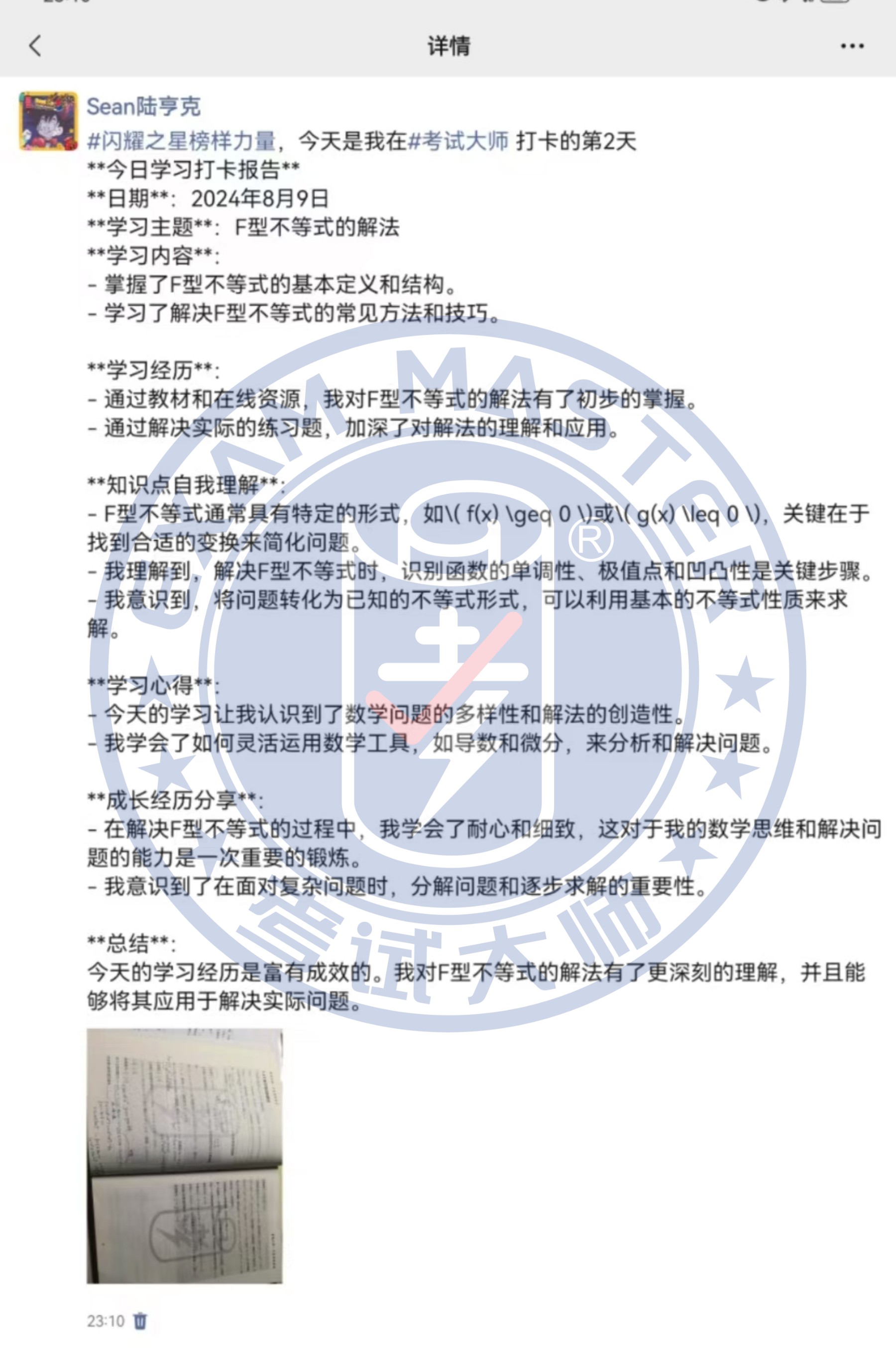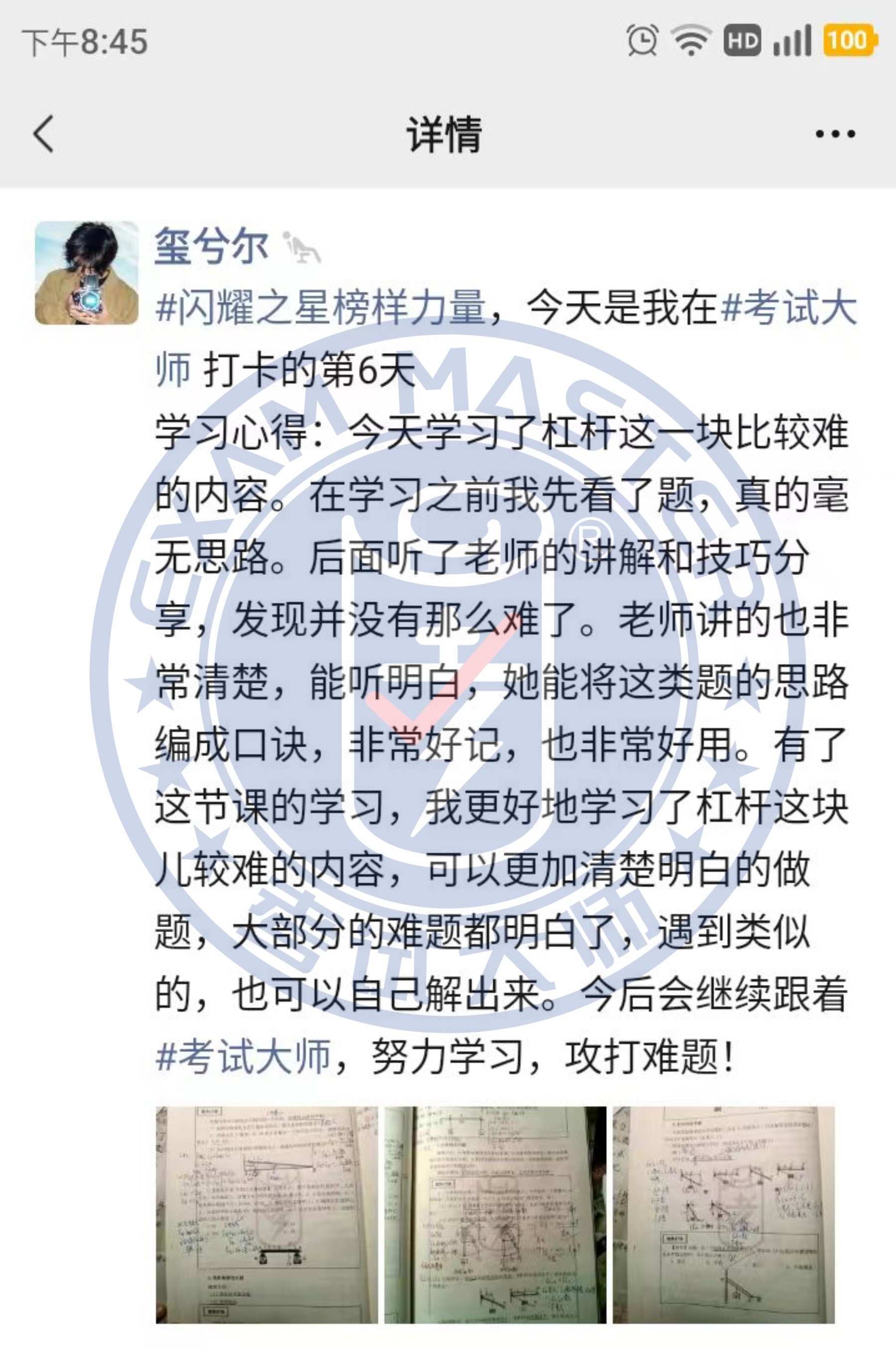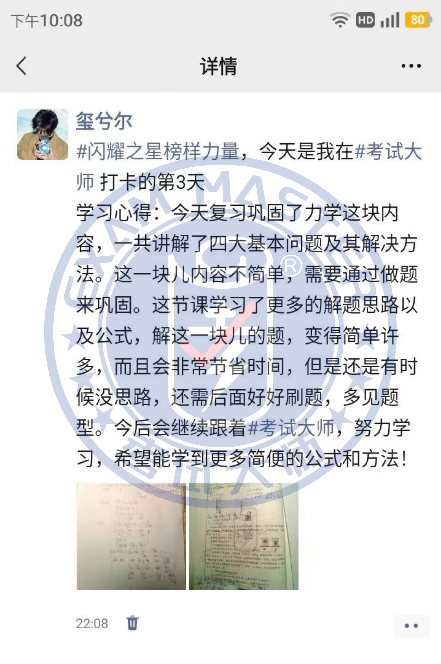 /考试大师八月份学习之星评选表彰 /