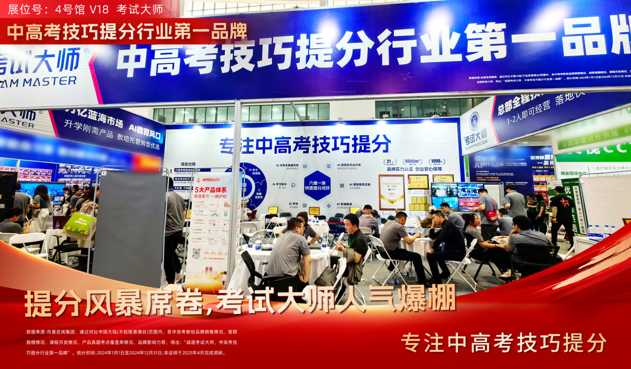 近日。中国教育展览馆内,一场教育行业的盛会——中国教育加盟展暨第 21 届中国教育创新力大会盛大举行。在这场以“创新”为名的浪潮中,考试大师以现象级的热度与实力,将一场展会演绎成行业变革的宣言,用爆棚的人气与深远的格局重构力,为教育未来写下充满想象的序章。