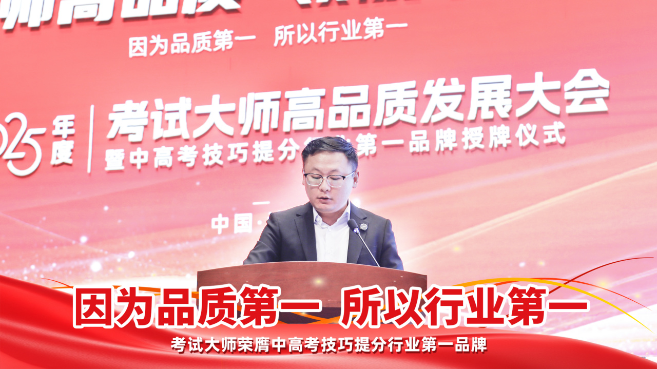 考试大师总经理刘庆洋的致辞如一盏明灯,照亮了品牌21年的坚守之路。“从最初几门课程的拓荒者,到如今覆盖全科、融合AI的行业标杆,我们拒绝短期逐利的商业模式,坚持选择将利润投入教研与服务。”刘庆洋的发言,既是对过往的回望,亦是对初心的重申。当“一人一课表,一学一规划”个性化提分方案与“三维一体”服务体系被层层拆解,与会者清晰看到:品质,始终是考试大师扎根行业的生命线。