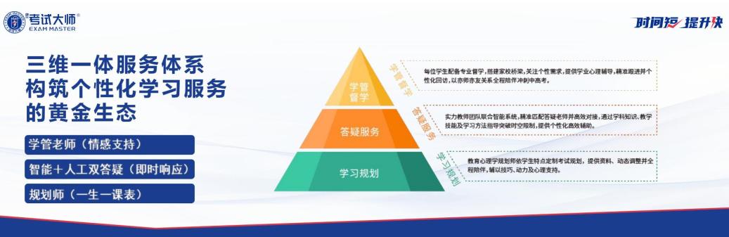 学管老师提供情感支持,化解备考焦虑;AI答疑系统7×24小时即时响应,扫清知识盲区;生涯规划师定制长线方案,让提分与人生目标同频共振。考试大师以“人机协同”模式,打造有温度、有深度的教育陪伴。