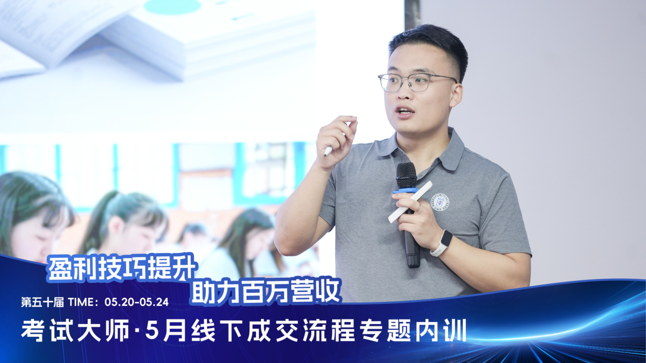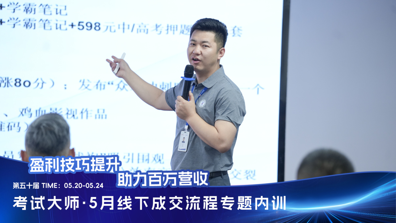 首日课程聚焦行业破局,以“政策与市场双轮驱动”为主题,考试大师总经理刘庆洋深度解析教育赛道新风口,结合宏观经济与区域需求,为合作伙伴勾勒差异化竞争路径。随后的“项目核心竞争力解析”与“盈利模型沙盘推演”环节,直观展现考试大师项目的可持续增长逻辑,激发合作伙伴的市场开拓信心