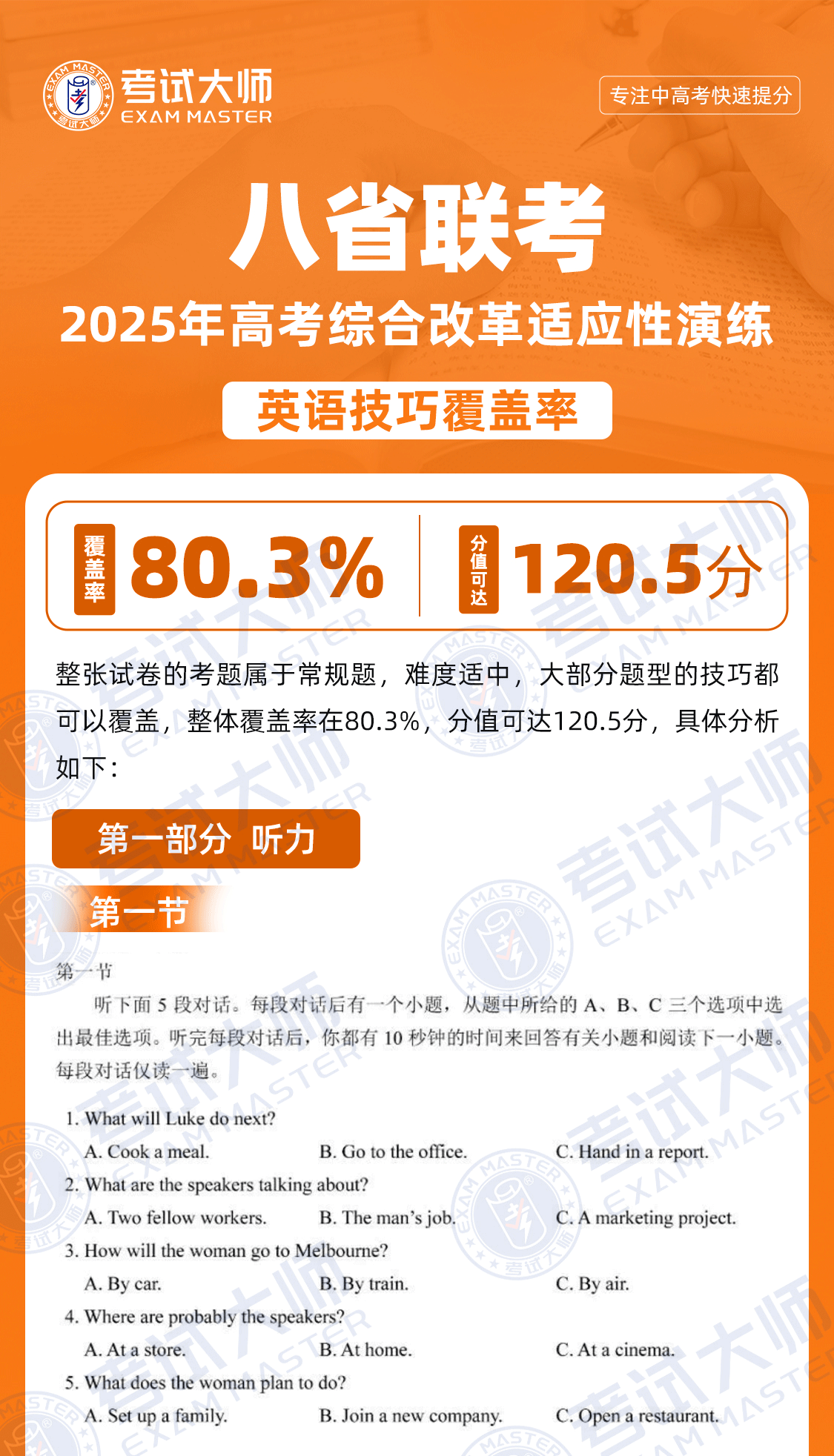 八省联考:2025高考综合改革适应性演练英语试题技巧覆盖率分析
