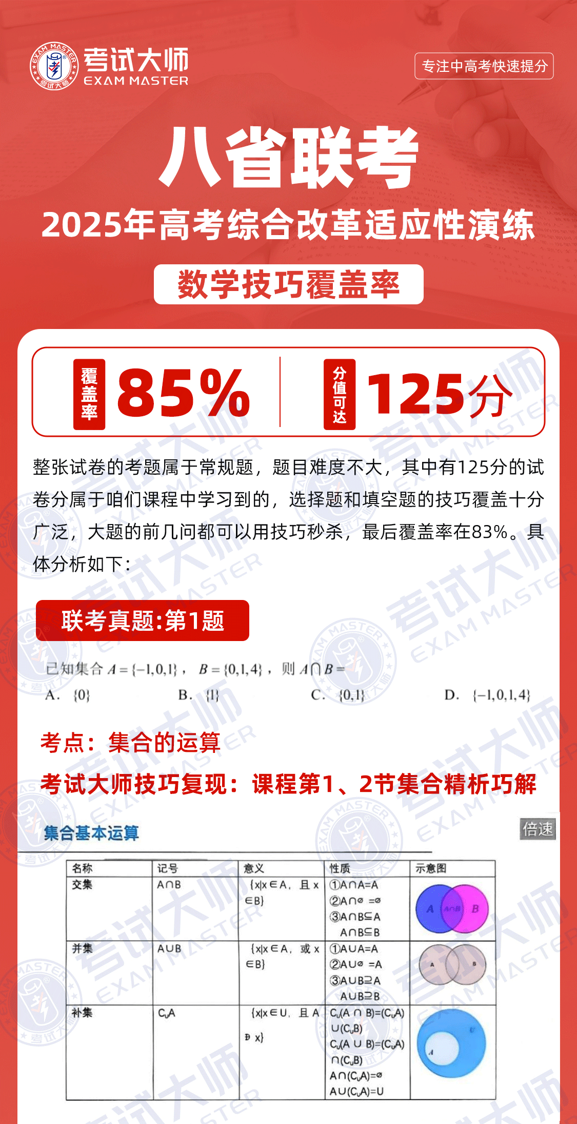 八省联考:2025高考综合改革适应性演练数学试题技巧覆盖率分析
