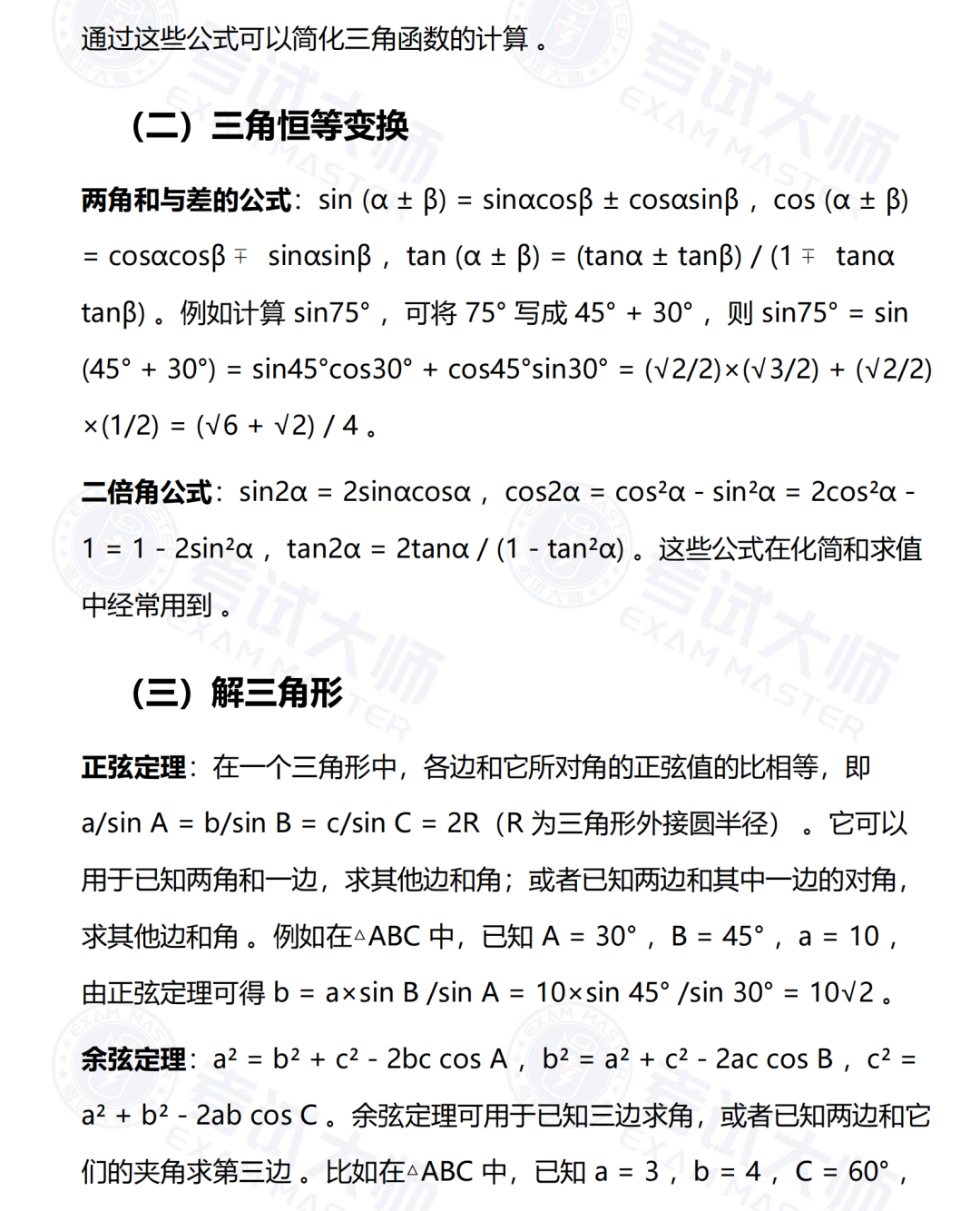 考试大师精心整理助你将公式化为本能才能在分秒必争的考场稳操胜券