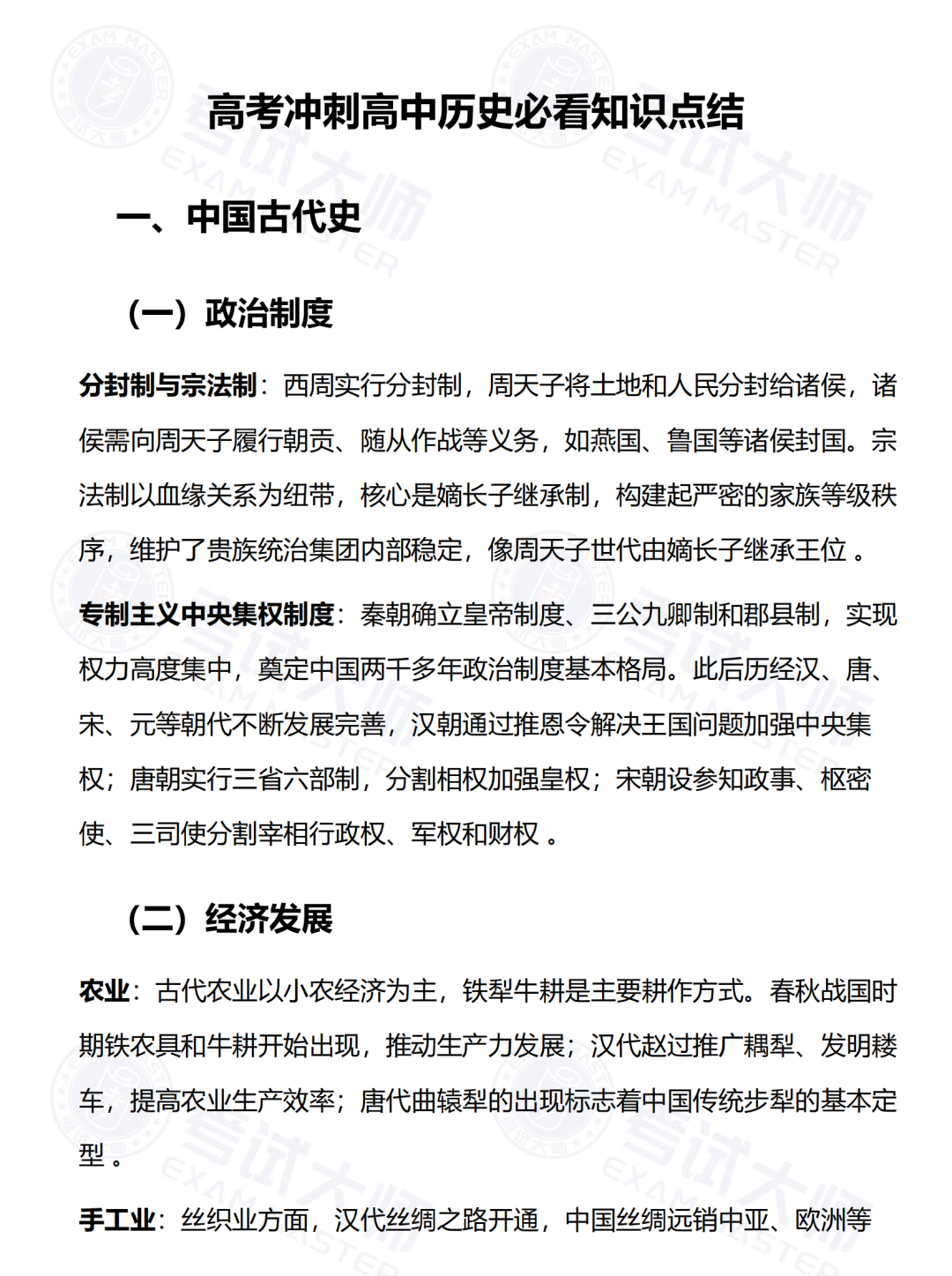 历史长河奔涌,考点自有脉络。考试大师助你提炼时间轴,用真题透析命题规律。更多专题精讲、材料题破解,请一键解锁考试大师课程。高考在即,愿你以史为剑,斩获辉煌!